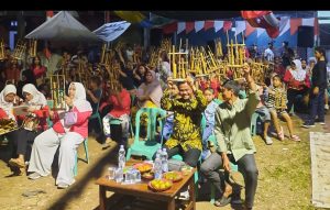 Dari atas panggung yang sederhana Agus Maulana berhasil menghipnotis warga dengan memainkan nada yang di harapkan untuk di padukan dengan irama lagu Nasional yang berisi tentang perjuangan, 5 lagu berhasil di mainkan dengan kompak oleh warga.